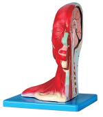 示人體頭頸部肌肉的形態(tài),矢狀切面示腦、鼻腔、口腔、咽、喉、氣管、食管、椎管等結(jié)構(gòu)。