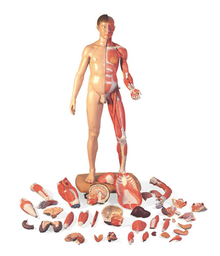 人體全身層次肌肉附內(nèi)臟模型由男性頭頸部、軀干和四肢組成,對(duì)比展示人體皮膚、肌肉、胸腔、腹腔、盆腔等結(jié)構(gòu),可分解成39部件。