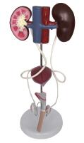3.功能:顯示了腎、輸尿管、膀胱、尿道、睪丸、附睪、 輸精管、射精管、前列腺、精囊腺及尿道球腺等,一側(cè)腎作額狀切面,示其皮質(zhì)、髓質(zhì)、腎小盞、腎大盞和腎盞等。膀胱、前列腺、陰莖作矢狀剖面,膀胱內(nèi)腔示膀胱三角、尿道內(nèi)口、輸尿管開口。前列腺示外形及剖面。陰莖示陰莖海綿體和尿道海綿體。睪丸作正中矢狀面,示睪丸小葉及睪丸網(wǎng)等;