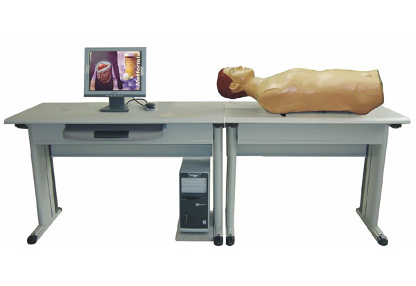 ■ 電子標(biāo)準(zhǔn)化病人能模擬43種腹部檢查體征,同機(jī)器人一樣實(shí)現(xiàn)智能化控制,真實(shí)地模仿人體腹式呼吸和腹式呼吸時(shí)肝、膽囊、脾在膈肌下的運(yùn)動,創(chuàng)造了一位智能化的仿真病人,供學(xué)生進(jìn)行反復(fù)地觸診訓(xùn)練。