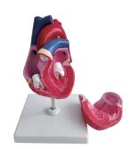 3.功能:模型外形部分,示冠狀溝,溝的上方為心底部,包括心房、心耳及出入心臟的大血管。示前、后室間溝為左右心室的分界。出人心臟的大血管有上、下腔靜脈,肺靜脈、肺動脈、主動脈及主動脈弓上發(fā)出的三條血管。(由右向左為頭臂干, 右頸總動脈、左鎖骨下動脈),營養(yǎng)心臟的血管有左、右冠狀動脈。示心小靜脈,心中靜脈,心大靜脈,及冠狀竇。內(nèi)部構(gòu)造:主要顯示四個心腔;此外,左右心房之間有房間隔,上有卵園窩,左右心室之間有室間隔,在隔上示膜部和肌性部;
