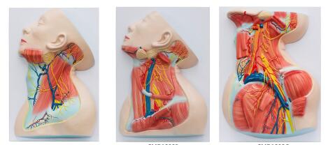 示下頜下三角、頦三角、頸動(dòng)脈三角、肌三角、枕三角、鎖骨上三角及腋窩的淺中深層解剖結(jié)構(gòu)。每套3只。