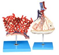 3.功能:模型由肺小葉放大和肺泡囊、肺泡管,彈性纖維等肺泡組成,顯示終末細(xì)支氣管、呼吸性細(xì)支氣管、肺泡上皮等結(jié)構(gòu)以及肺泡、肺泡上皮、肺泡囊、肺泡管、肺泡毛細(xì)血管等結(jié)構(gòu);