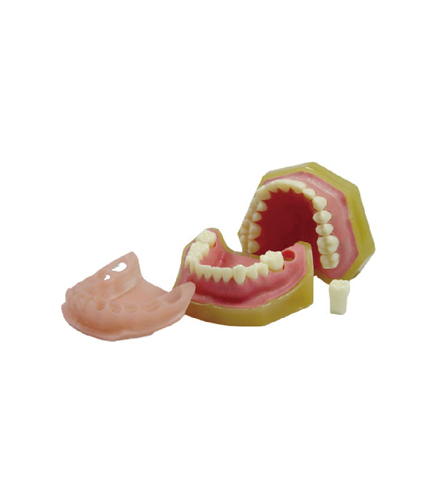 牙為進(jìn)口樹(shù)脂,軟牙齦由進(jìn)口透明硅橡膠,二者均可拆卸,座為進(jìn)口水晶膠制作而成無(wú)頜架,可選配金屬仿生頜架
